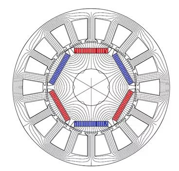磁力線由電機(jī)轉(zhuǎn)子上的磁鐵部分產(chǎn)生,經(jīng)由導(dǎo)磁材料的傳導(dǎo)至定子部分,與定子上的電能線圈進(jìn)行正交作用產(chǎn)生轉(zhuǎn)矩,為電機(jī)轉(zhuǎn)動(dòng)力量的來(lái)源。但導(dǎo)磁材料能容許的磁通密度有限,目前能容納多的磁力通過(guò)的材質(zhì)即為矽鋼片,也是目前電機(jī)中常使用的導(dǎo)磁材料。