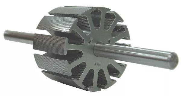 鐵材為熟知的導(dǎo)磁材料,常稱電機(jī)導(dǎo)磁材料為鐵心,實(shí)際應(yīng)用上,大多選用具有高飽和磁通密度及低損失的矽鋼片作為電機(jī)導(dǎo)磁材料,矽鋼片實(shí)體如下邊所示。導(dǎo)磁材料所產(chǎn)生之損失統(tǒng)稱為鐵損,包括磁滯損及渦流損兩種,皆為磁能于導(dǎo)磁材料內(nèi)傳輸及轉(zhuǎn)換時(shí)所造成之損失。